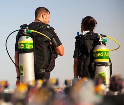 通常の空気には酸素が21%含まれていますが、酸素を22%以上含んだ気体「エンリッチド・エア」を使用し、水中生物の観察や水中撮影がより長く楽しめます。