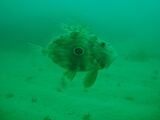 ランチ休憩後、2本目は白浜の名物ポイント「沈船」にエントリーでした! 午後から北西の風が強く吹きだし、海面には白波がイッパイ・・・しかし、いざ水中に 入ってしまえば中は穏やかそのもの! 北の根からスタートすると、沈船付近にはマアジの群れがバリアのように覆いつくし ており、その数の多さに圧倒されるばかり・・・何度潜っても全然飽きが来ませんね! その後、南の根に行く途中にはマトウダイ3匹が見れたり、アーチの根では交接中の アオウミウシもジックリ見れました!(キャー!恥ずかしいー!) 今回のゲストは経験本数600ダイブを越すベテランH野さんなので、エアの心配も 無く、広範囲の沈船ダイブが楽しめました♪