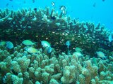 三本目には「チヨチブル(千代頭)」というポイント。 ここは珊瑚の大きな根があるポイントで、ごつごつした根が多かったですね〜。 水路を進んでいくと・・・小ぶりなアオウミガメが根の上でお食事中っ!! 暫くするとモデルよろしく僕らの側をぐるぐる回り、悠々と泳ぎ去っていきましたっ!小ぶりだけど大物な奴でしたね〜。