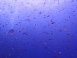ランチ休憩後は、マッタリとスノーケリングを楽しみ火照った体をクールダウン! 午後からはモクモクと積乱雲が発生してきたので、雨&雷を警戒して早めにエントリ ーし「ナガシタグリ」に潜りました! 目の前一面に飛び込んできたのは数万匹以上はいるかと思われるスズメダイの群れ! こんな多くのスズメダイは沖縄でも見たことがない!たぶん、ここにいるスズメダイ の数は日本一ではないでしょうか…!? ゲストの方も予想以上のスズメダイの群れにビックリされたご様子でしたネ!(^^ゞ