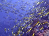 最終日の海は昨日のノンハンマーから一転し、主役のハンマーヘッドシャークが単体 から群れまで登場してくれ、アドレナリンがつゆだく状態っ!(@_@;) タカベシャワー&イサキウォールは当たり前!メジロザメもたびたび見られ、エント リーからエキジットまで一時も気が抜けないアドベンチャーダイビングとなり、日頃のストレスなんかひとっ飛び!心が洗われましたねぇ〜♪