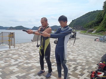 そんな中、ダイバー認定を目指すKさんは「シャクシの浜」で海洋実習bR〜4を実施し、前回プールトレーニングで習得したスキルのおさらいや、コンパスを使って水中ナビゲーションの練習をしたり、フィッシュウォッチングも楽しみながら海に対するルールやマナー、水中動生物を傷つけない接し方なども知っていただきました! 次はステップアップコースを目指して、ダイビングの楽しみの幅をさらに広げてみてくださいネ!認定おめでとうございました!m(__)m