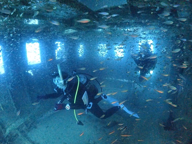 船内を覗くと薄っすら暗闇の中、無数の魚たちが身を寄せ合う様子が観察できたり、ダイビング器材が絡まないよう細心の注意を払いながら、水中ライトを手に船内に侵入すると、未知の領域に足を踏み入れたドキドキワクワクなアドベンチャー感覚&非日常の世界がタップリと味わえたのではないでしょうか!