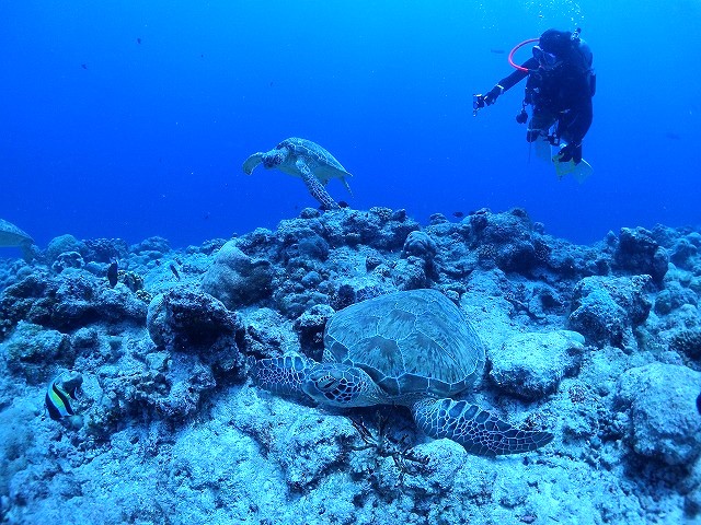天候:ずっとピーカン♪ 気温:30〜31℃ 水温:29〜30℃ 海況:穏やか!真っ青! 透明度:15〜30m スタッフ:芹澤