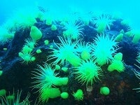 深場ポイント「ショウガセ」では、珍しい光るイソギンチャクの群生が見られます!